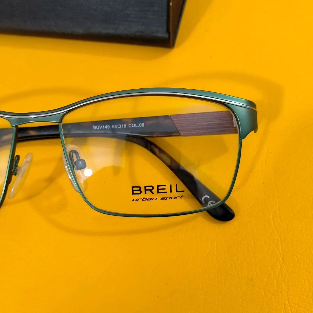 Connect with nature’s elegance in the BREIL frame, featuring a green metal front with a silver accent line and sheet legs. This unique color choice offers a luxurious and distinctive statement.