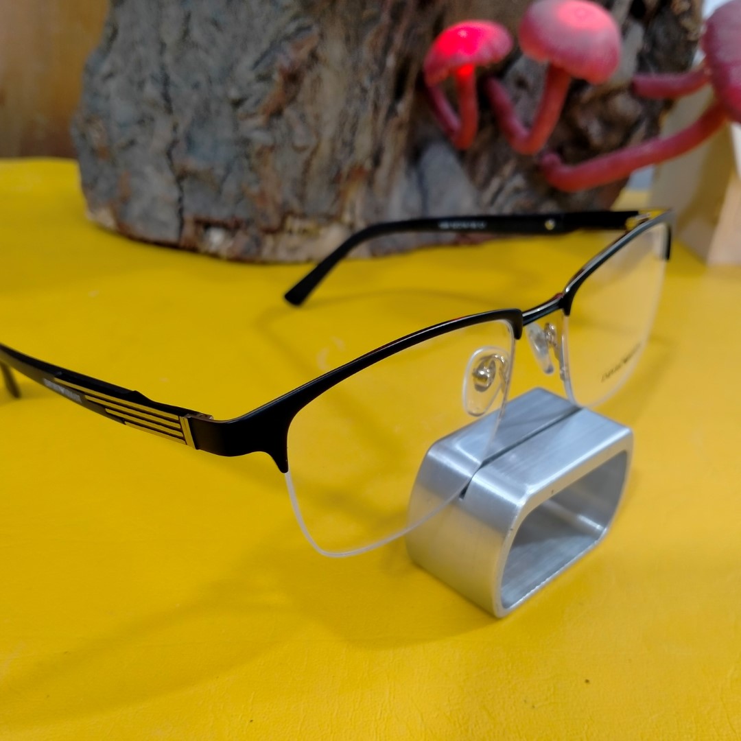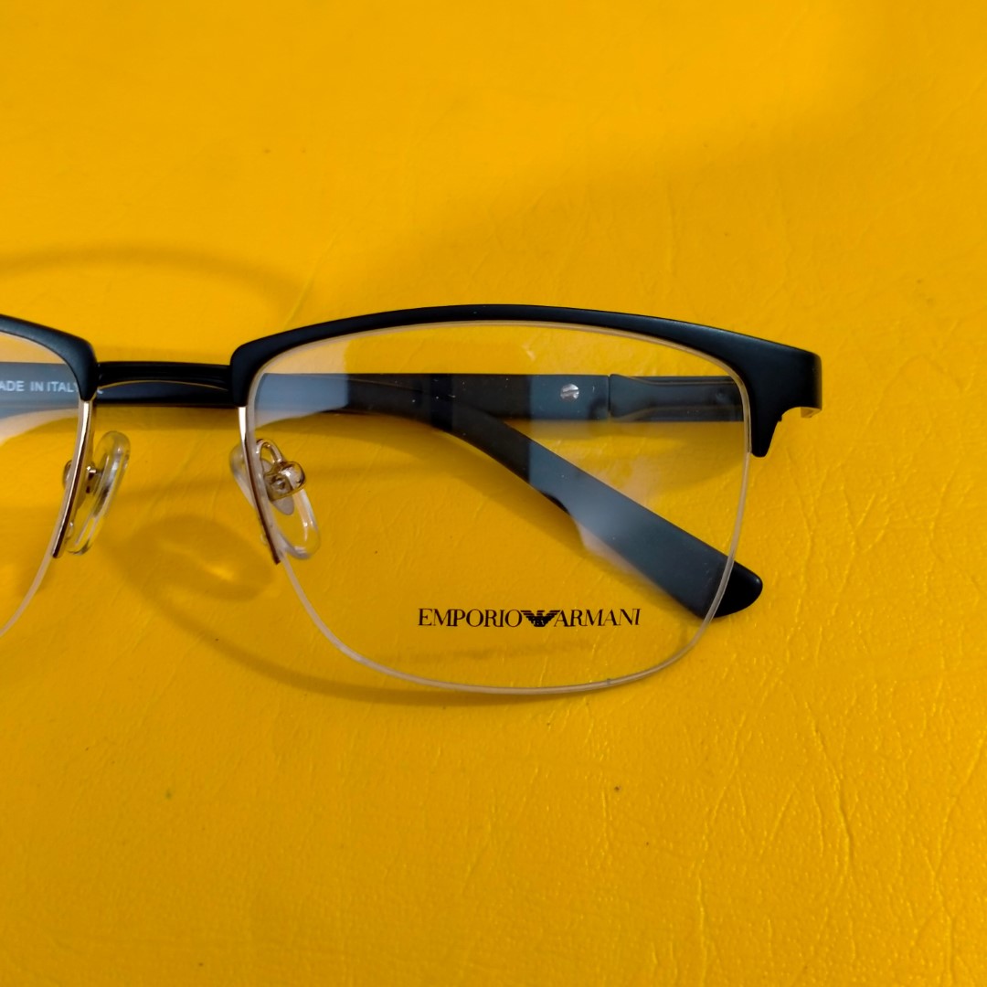Define luxury with this EMPORIO ARMANI frame, a black and gold half-rim design with stylish legs. Its impeccable balance of bold colors and refined design creates a prestigious and eye-catching look.