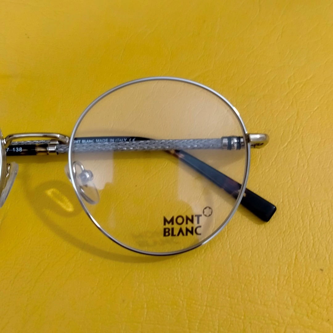 Elevate your style with the MONT BLANC 45 J, a round frame combining silver and golden metals with stylish legs. Its distinctive circular shape and premium materials create a look of artistic luxury.